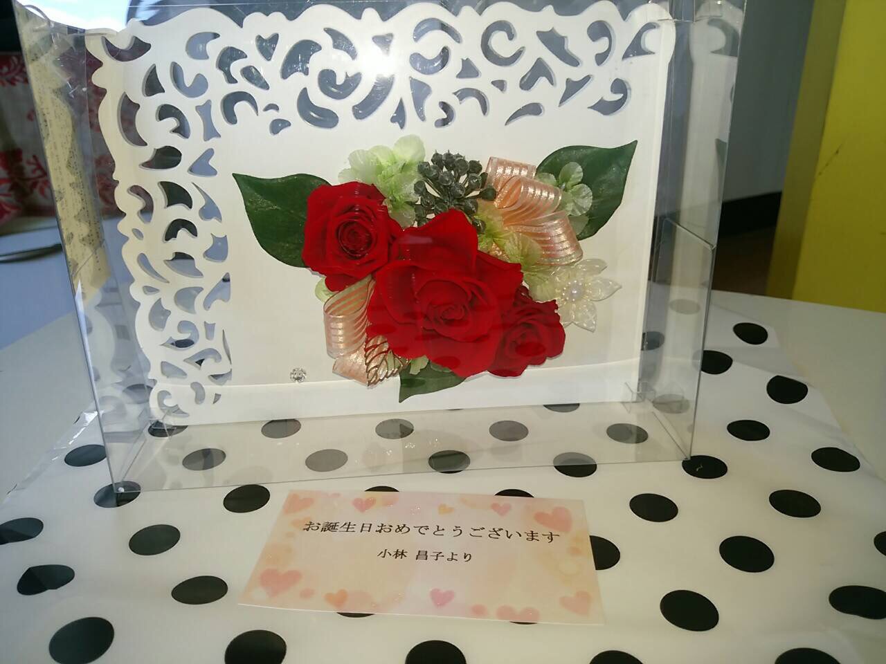 白本さんの誕生日が、6月2日と知ってて、スワロフスキーの6と2の数字を持った人形をサプライズで、プレゼント!めちゃ喜んでますね、よかったね。(^^)